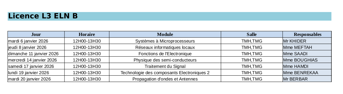 Planning des Examens du 3ème Année Licence ELN section B