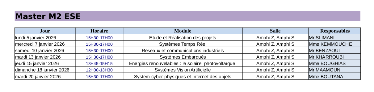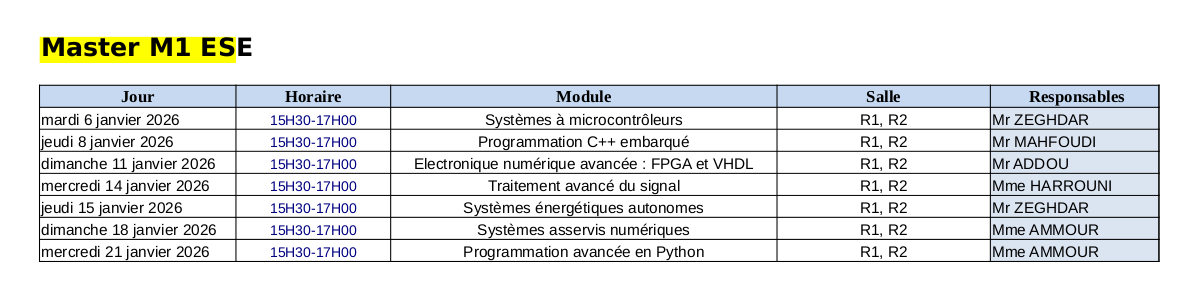 Planning des Examens du Master 1 ESE