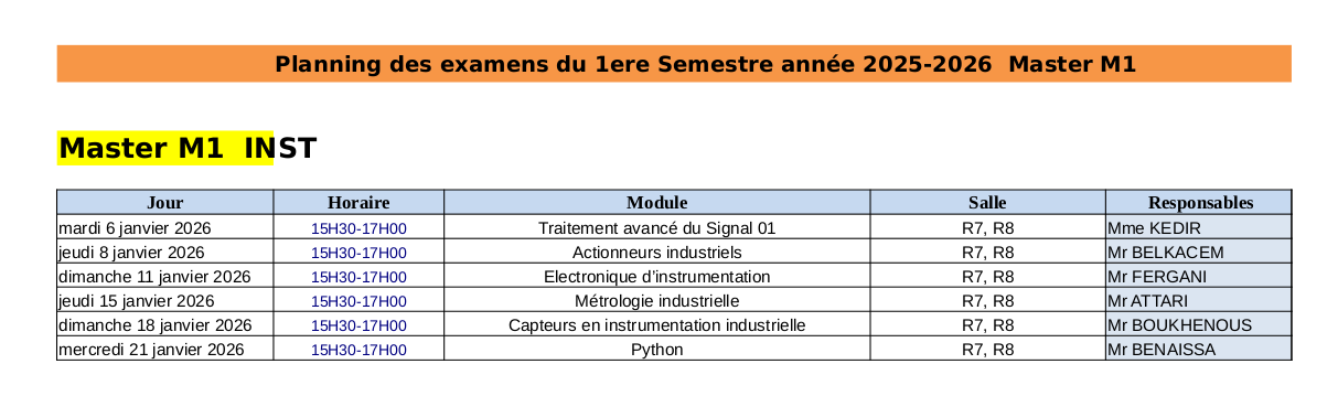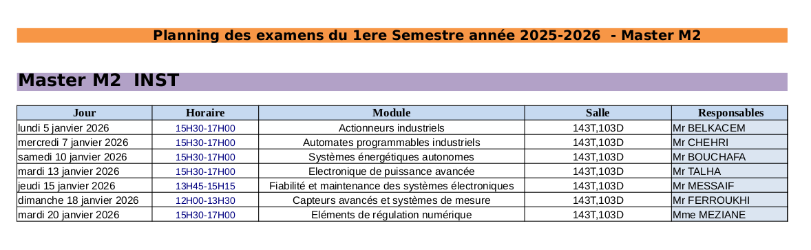 Planning des Examens du Master 1 INST